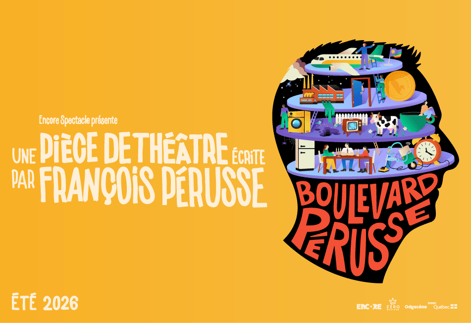 Bien qu’il ne soit pas sur scène physiquement, François Pérusse demeure omniprésent : il signe toute l’ambiance sonore du spectacle, des musiques aux effets sonores en passant par les voix hors champ. Son univers sonore, fou, décalé, reconnaissable entre mille, s’invite sur les planches, avec quelques clins d’œil discrets à ses personnages bien connus. Les amateurs de son univers retrouveront tout ce qui fait sa signature… et les autres y plongeront avec plaisir. Pour la première fois, son imaginaire ne se contente plus de s’entendre : il prend vie sur scène. Du vrai théâtre de boulevard, version Pérusse ! La mise en scène et la distribution seront dévoilées sous peu.